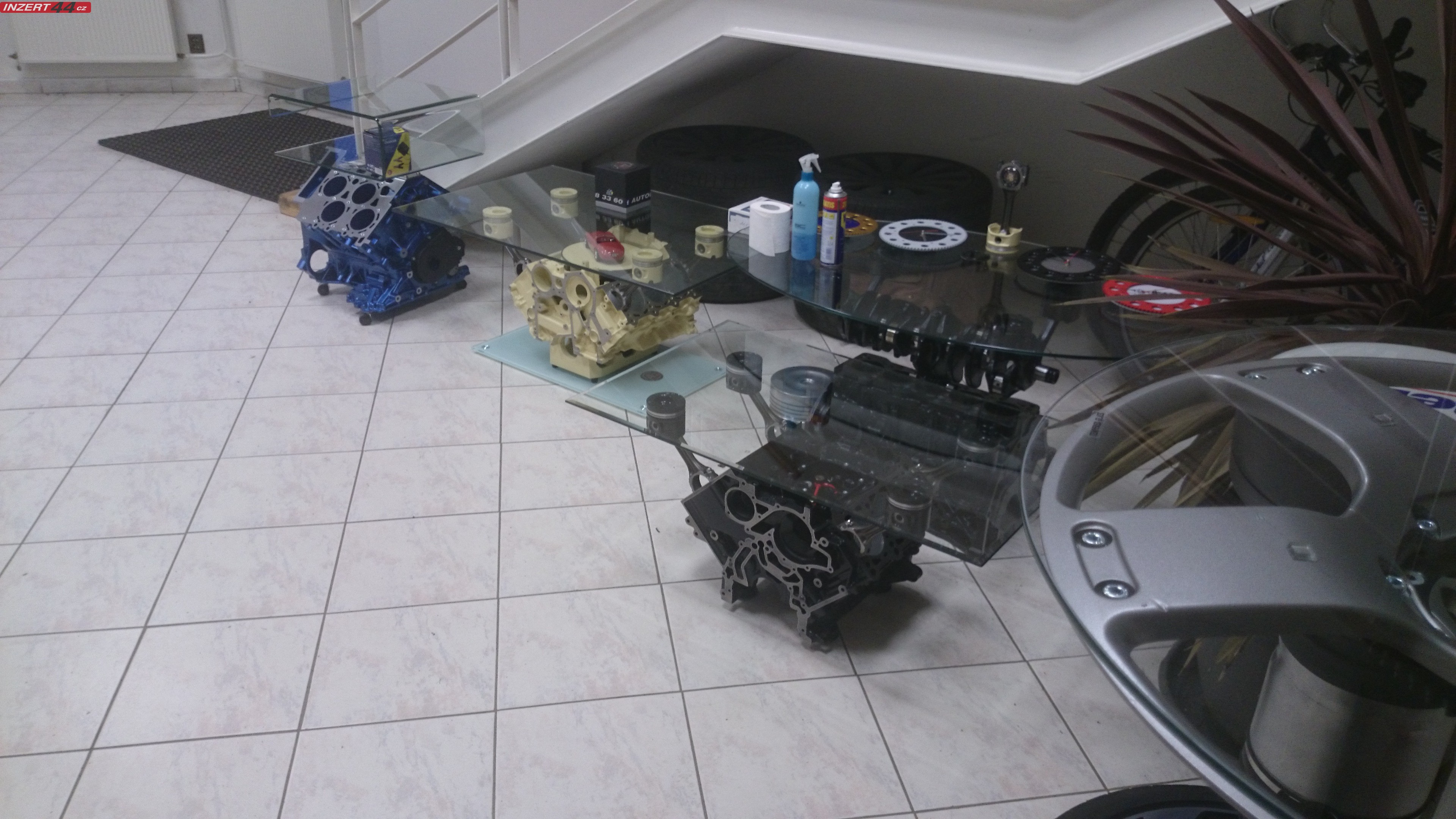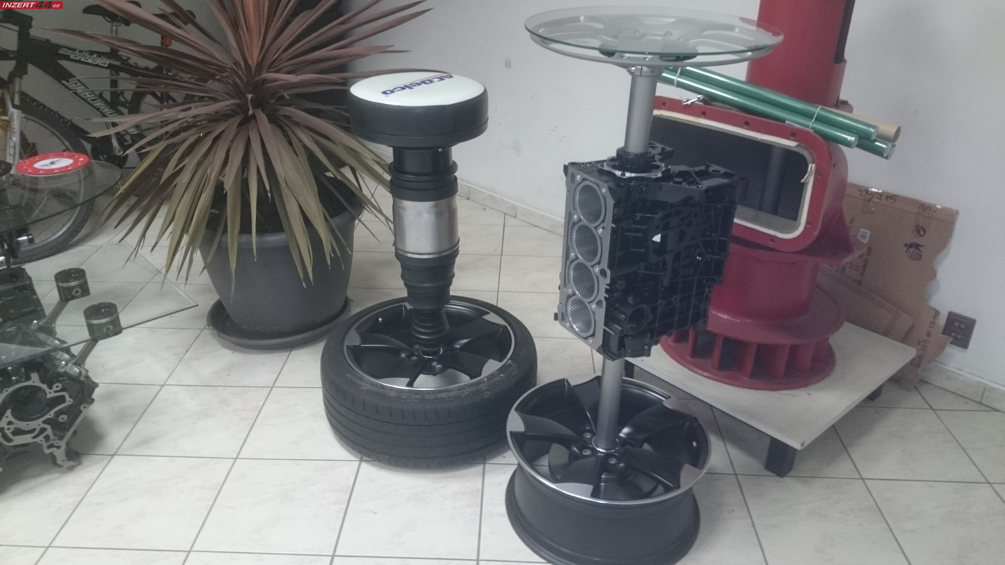 Konferenční stolek,lakovaný,leštěný,carbonové válce,baterie,nabíječka,Led,bezpečnostní sklo.